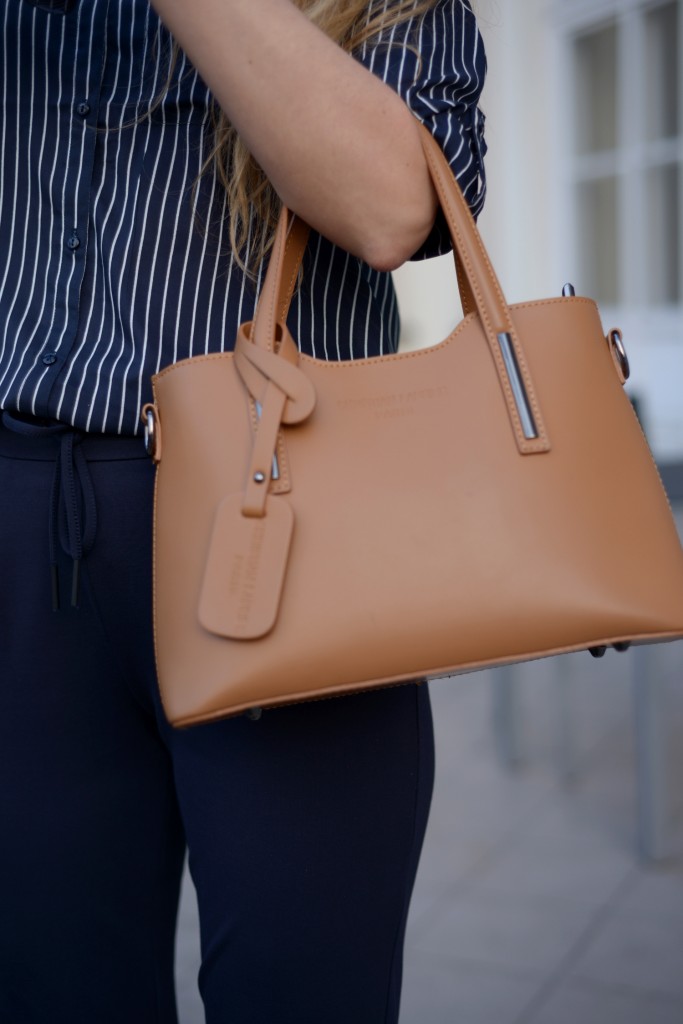 W powietrzu czuć już wiosnę… wreszcie! Mam nadzieję, że Wy też czujecie przypływ pozytywnej energii 😉 Niebo jest coraz bardziej niebieskie – stąd dzisiejsza stylizacja 😉 Luźna, oversizowa koszula podbita nutką kobiecości w postaci szpilek. Całość przełamana torebką w camelowym kolorze. Osobiście zakochałam się w tej wielkości torebek. Klasyczna, zgrabna, lekka i pojemna. Jeśli szukacie czegoś uniwersalnego – szczerze polecam! 🙂